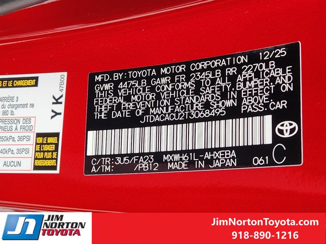 VIN JTDACACU2T3068495