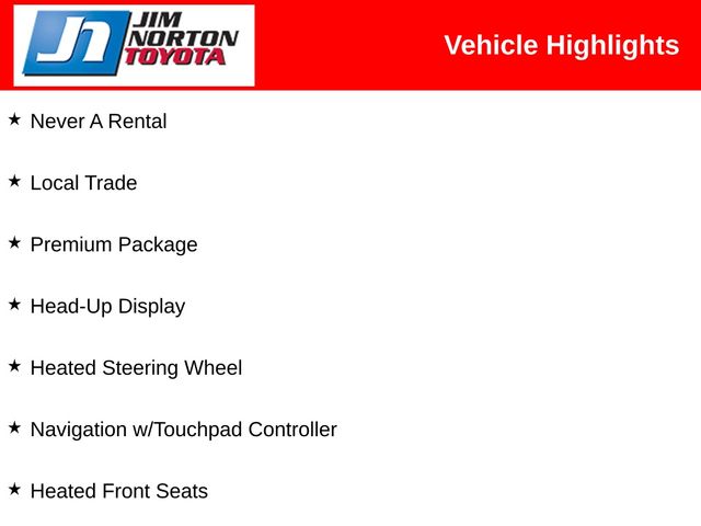 • Premium Package with Navigation, Head-Up Display, Heated Steering Wheel, and Heated Front Seats