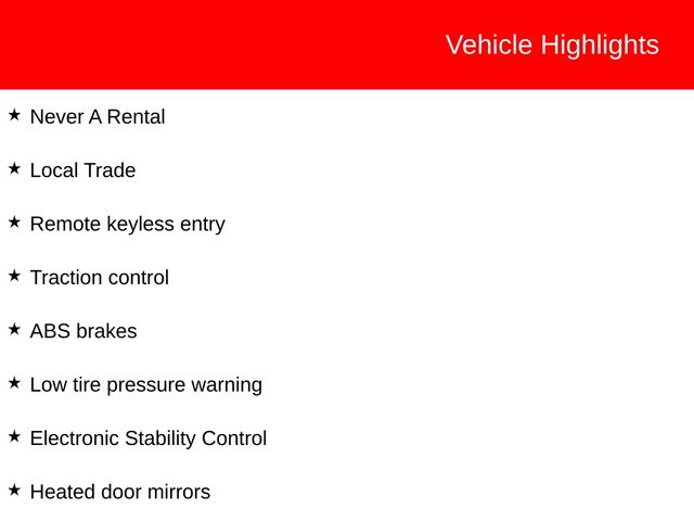 Used vehicle pricing includes $499 documentation fee all offers and incentives. Price does not include tax, title. license $10 electronic filing fee and must be paid by the purchaser. Some prices may include manufacturer-to-dealer offers that are not compatible with manufacturer special finance programs and/or lease offers. While great effort is made to ensure the accuracy of the information on this site, errors do occur so please verify information with a customer service rep. This is easily done by calling or visiting the dealership. Dealer assumes no responsibility for inaccuracies after the purchaser has taken delivery of the vehicle. Vehicles are not available for export out of the Continental United States. Images displayed may not be representative of the actual trim level of a vehicle. Colors shown are the most accurate representations available. However, due to the limitations of web and monitor color display, we cannot guarantee that the colors depicted will exactly match the color of the car. Information provided is believed accurate but all specifications, pricing, and availability must be confirmed in writing (directly) with the dealer to be binding. Neither the Dealer nor the website provider is responsible for any inaccuracies contained herein and by using this application you the customer acknowledge the foregoing and accept such terms. Not all vehicles are located on-site.