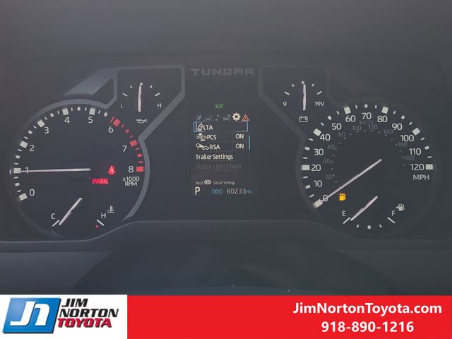 The Tundra's interior is designed with your comfort and convenience in mind. Enjoy the premium features, including a state-of-the-art Audio Multimedia System, Apple CarPlay/Android Auto integration, and a host of advanced safety technologies like Blind Spot Monitoring, Rear Cross-Traffic Alert, and Toyota Safety Sense.