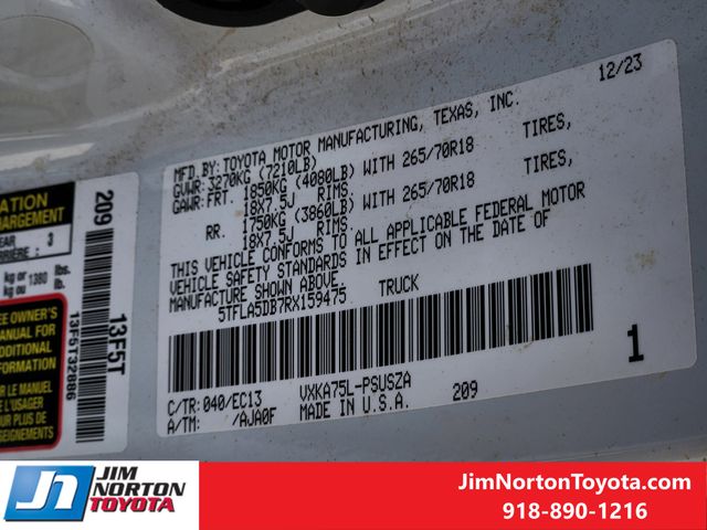 The TRD Off-Road Premium Package further enhances the Tundra's off-road prowess, with features like front fog and driving lamps, an under-body protector, and a front spoiler delete. The 18-inch TRD off-road wheels provide exceptional grip and style, while the front and rear mud guards protect against the elements.