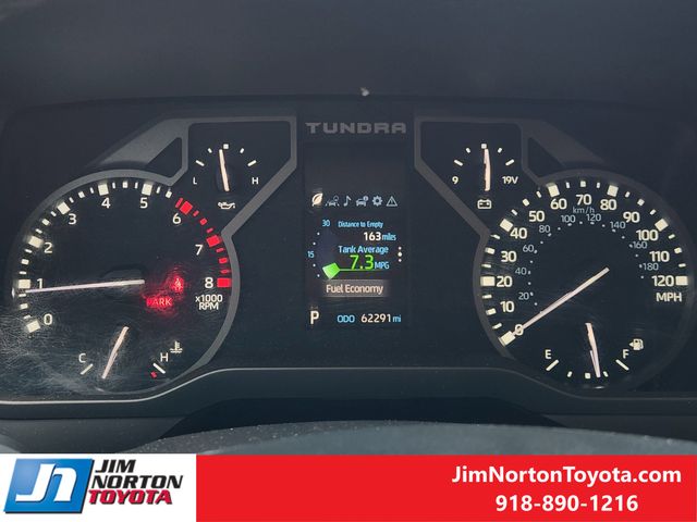 Inside, the Tundra SR5 offers a comfortable and well-appointed cabin, with features like a leather-wrapped steering wheel, SofTex seating, and a premium audio system with Apple CarPlay and Android Auto compatibility. The rear-view camera and advanced safety technologies, including automatic high-beam headlights and safety connect, provide added peace of mind on the road.