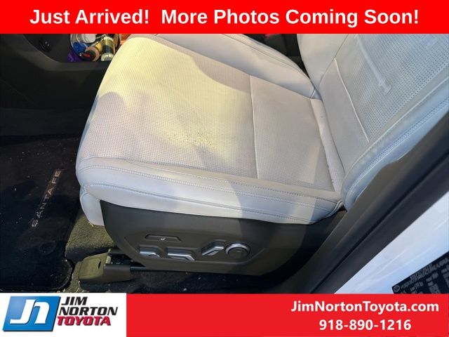 This Serenity White Santa Fe Hybrid Calligraphy boasts a wealth of premium features, including a Bose Premium Audio System, Heads-Up Display, and a Power Liftgate. Indulge in the comfort of heated and ventilated front seats, as well as heated rear seats, ensuring everyone onboard enjoys a truly relaxing journey.
