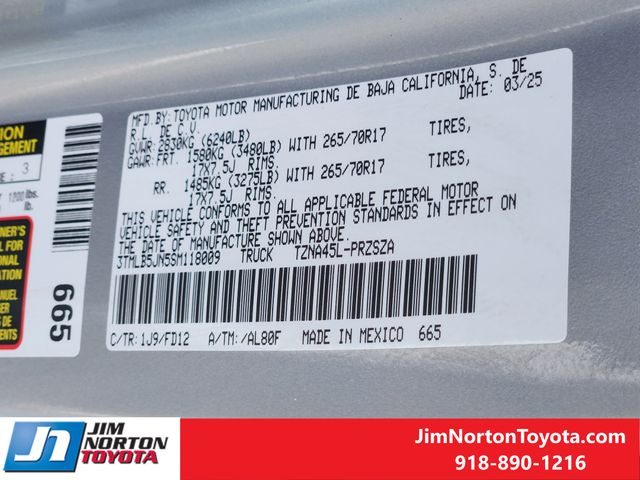 Boasting a sleek silver exterior and a spacious, well-appointed interior, the 2025 Tacoma TRD Off-Road offers the perfect blend of style and functionality. With an impressive 19 city / 23 highway MPG, this truck delivers exceptional efficiency without sacrificing its off-road prowess.