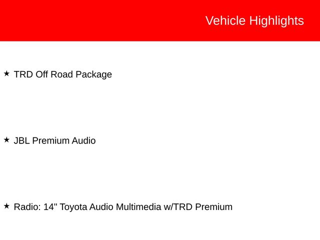 - Radio: 14" Toyota Audio Multimedia w/TRD Premium