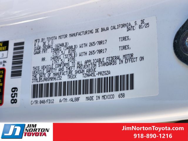 Safety is a top priority in the 2025 Tacoma TRD Off-Road. The vehicle is equipped with a suite of advanced safety technologies, including automatic high-beam headlights, rear-view camera, and a comprehensive airbag system to protect you and your loved ones.