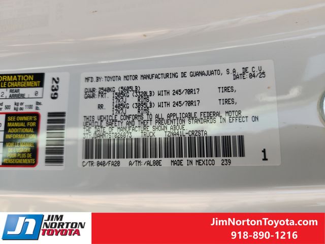 Experience the perfect blend of capability, comfort, and style with this 2025 Toyota Tacoma SR. Visit our showroom today and let us demonstrate how this exceptional truck can elevate your driving experience. We're confident you'll be impressed by its impressive features and uncompromising performance.